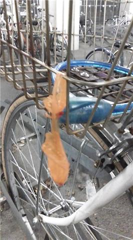 チャリ置き場に置いてあるワシの愛車にイタズラが…。