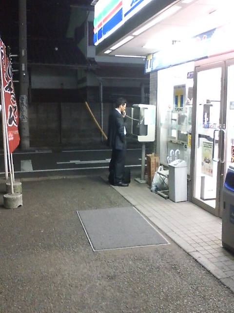 必死に公衆電話で話をしているサラリーマン。ワシは、聴覚を最大限にしたわけではないが、単に彼の声がデカいだけだが、どうやら愛おしい方と話をしとると思われた。携帯電話のバッテリーもなくなり、それでもまだ話足りない。