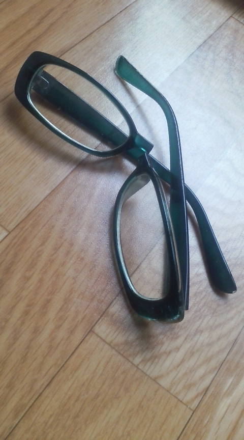 “メガネが真ん中から割れた”