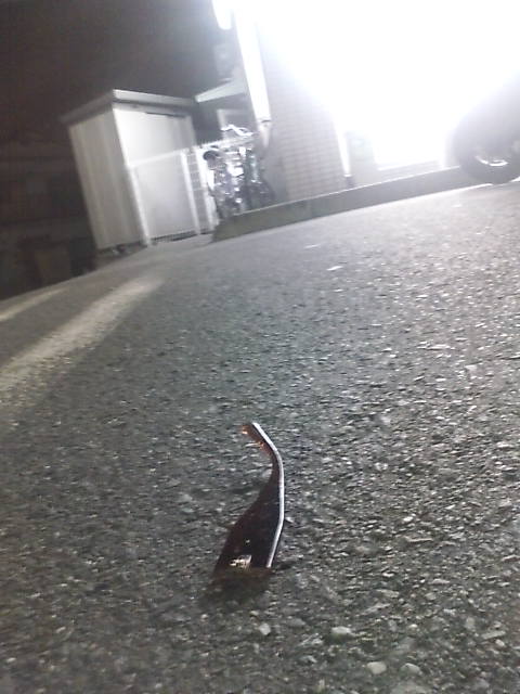 稽古の帰りに、近くのコンビニに立ち寄ったんぢゃが、駐車場に寂しそうに光っているメガネのフレームらしきモノが。