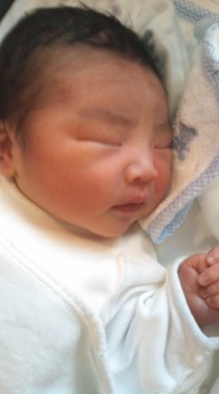 3600グラムというでかさで飛び出て来たらしいよ。バナナを与えたくなるような感じぢゃが、とてもかわいいわな。
