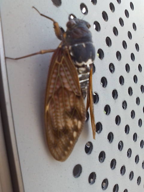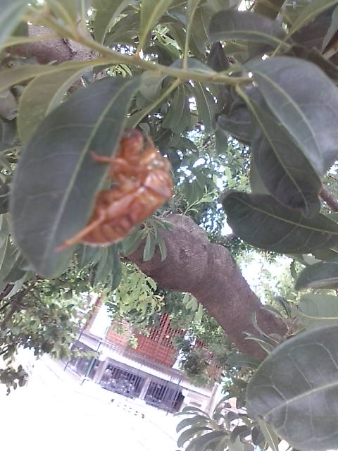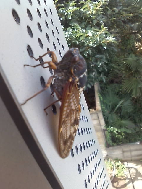 こやつのボディーラインが好きなんよね。こりゃオスぢゃ。こやつの場合メスのラインぢゃなく、オスのね。まぁミンミン言うとるくらいぢゃけぇオスなんぢゃがの。かなりの接近戦。メスに比べて、背中から末尾にかけての曲線美がたまらなくえーんですよ。全く無駄のない、風の抵抗を最小限に抑えたライン。たまりませんのぉ。このラインはB747(ジャンボ機)のアッパーデッキから後ろに流れる曲線に近いのよね。機会があれば見比べてみんさい。きっと納得しますわ。