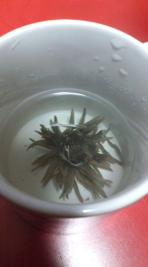 写真はメンバーのこんちゃんからジャスミン茶を頂きました。乾燥しとるこの季節には、喉にはええみたいです。このジャスミン茶は熱湯に放り込んだら“ポーン”いうて開きおりました。